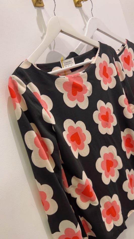 Camiseta con estampado SweetHeart. Con escote barco y manga larga. Cuello redondo. Marca Compañía Fantástica.