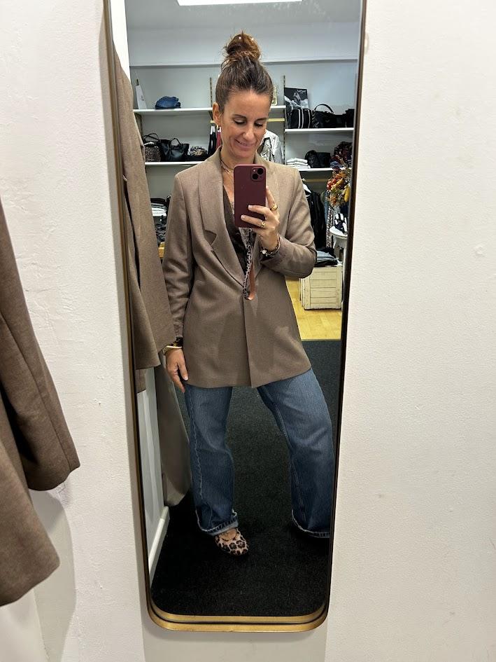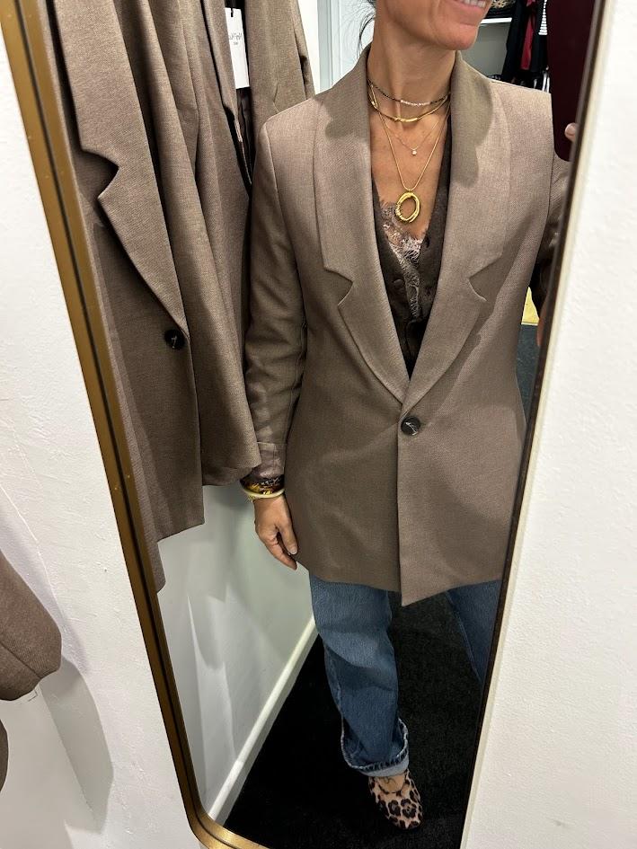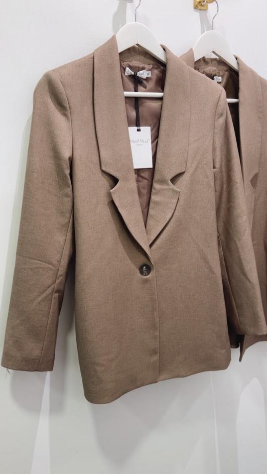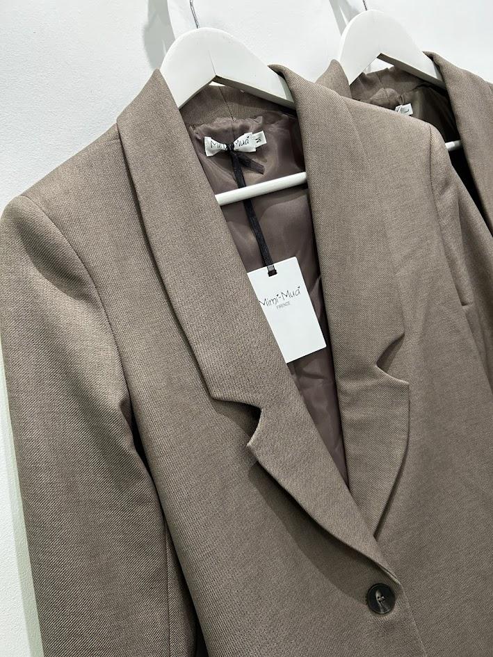 Americana corte recto, con solapa, forro interior. Cierre con boton. Marca Mimimua.