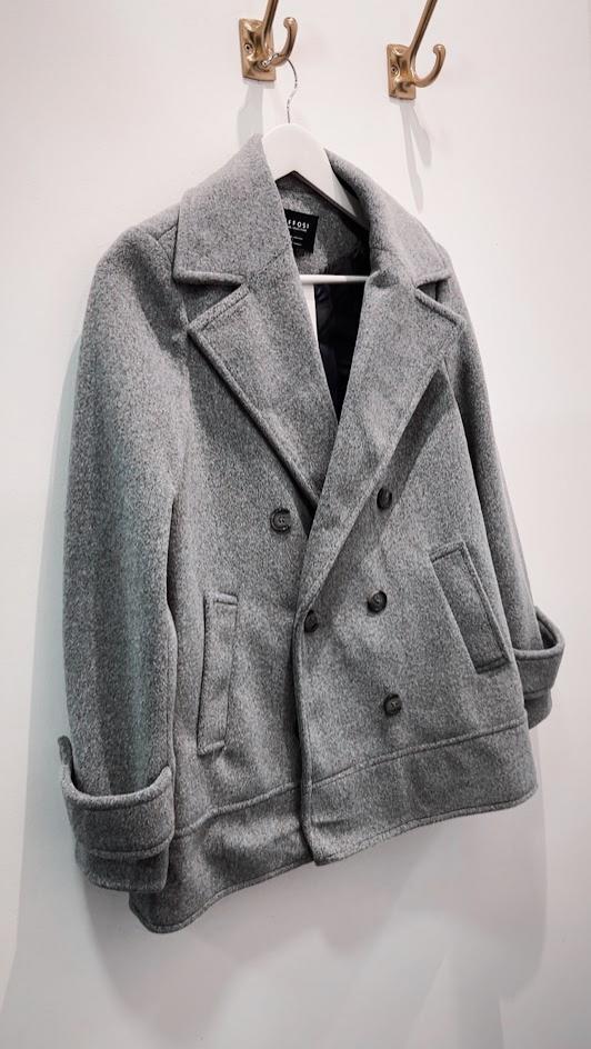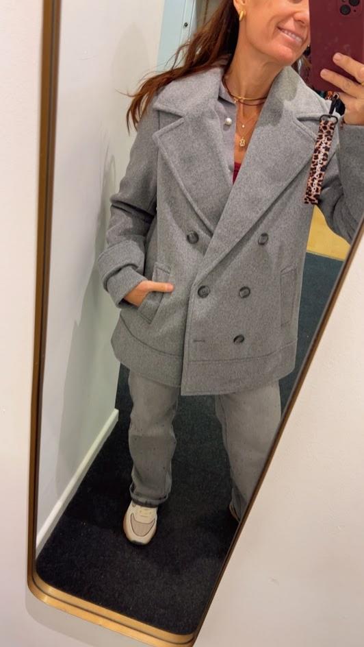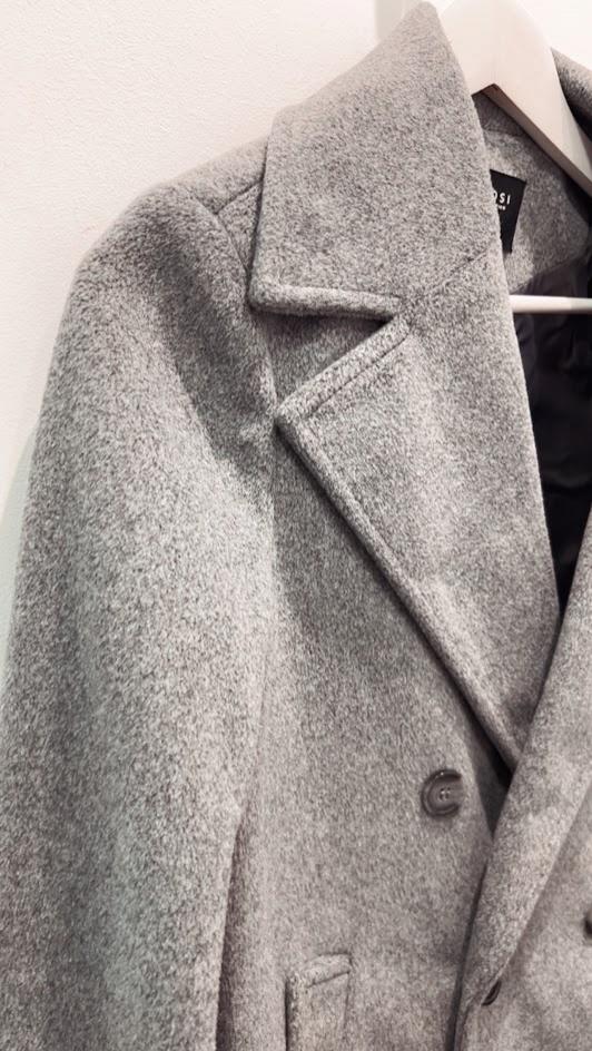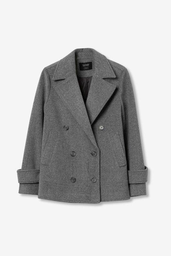 Chaqueta Tipo abrigo, regular fit con doble botonadura. Solapa ancha y dos bolsillos laterales. Color gris. Puños con tira decorativa y botón. Marca Tiffosi.