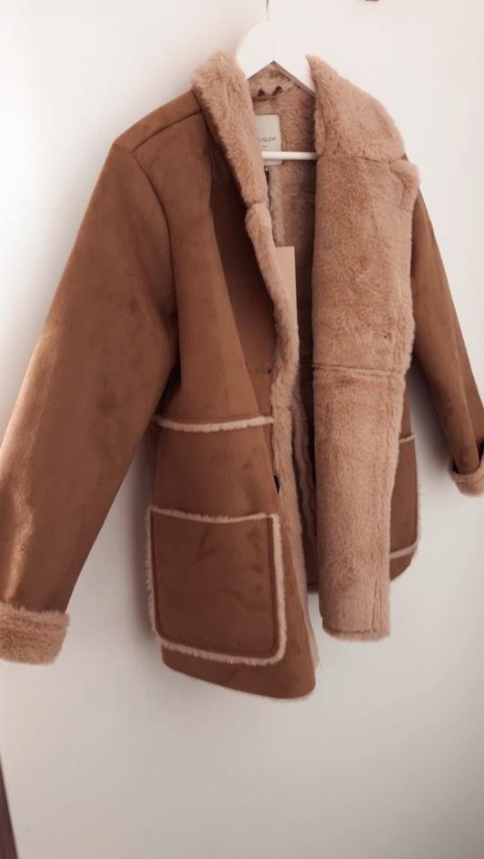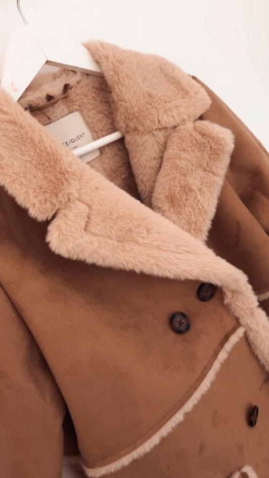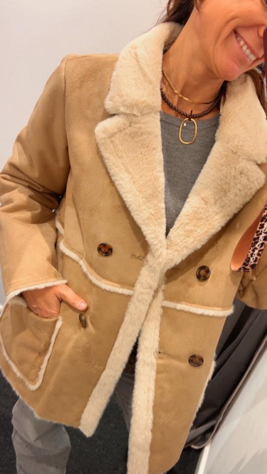 Chaqueta tejido suave imitacion ante y pelo sintetico muy suave. Cierre con botones cruzados y bolsillos delanteros. Color camel exterior, pelo crudo. Marca Freequent.