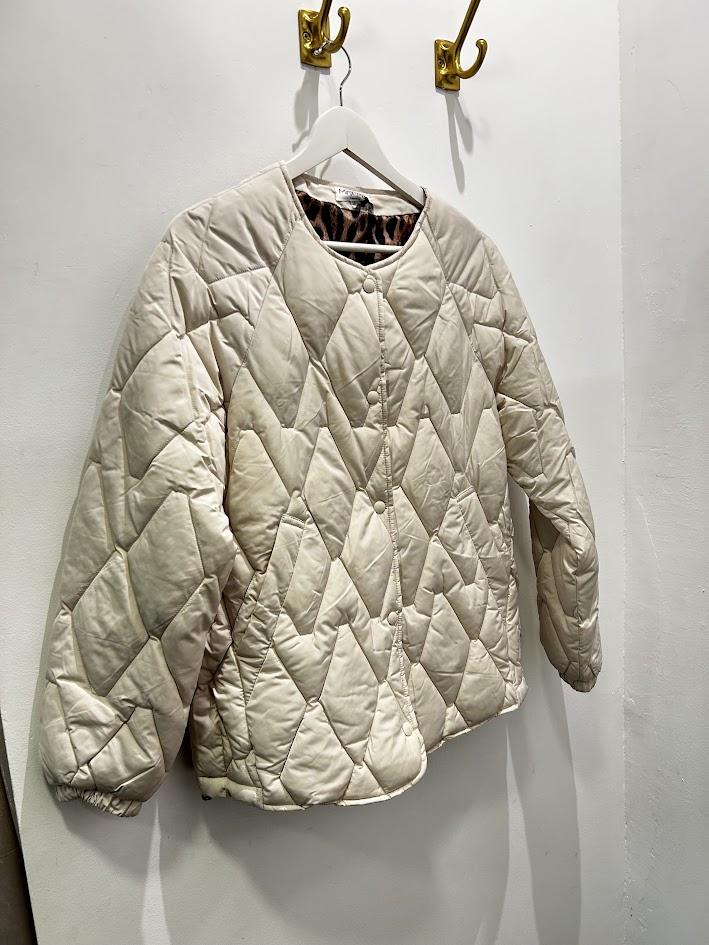 Chaqueta acolchada con cierre botones metalicos. Bolsillos laterales. Corte recto. Cuello redondo. Marca Mimimua.
