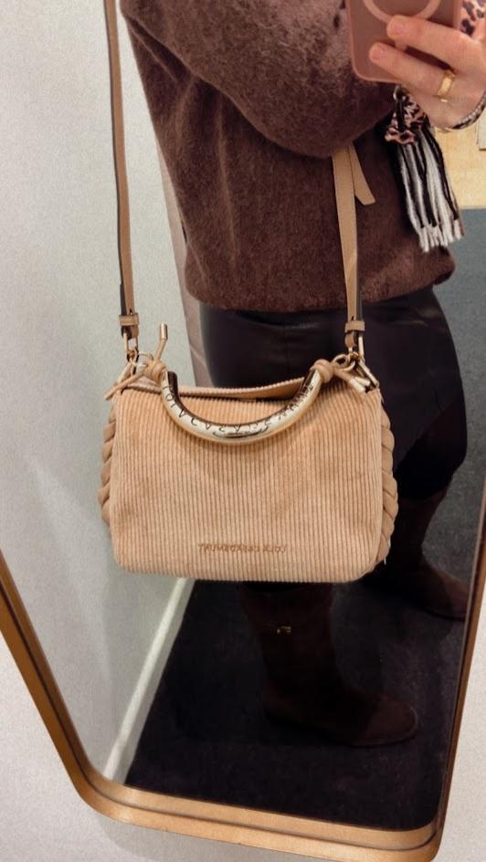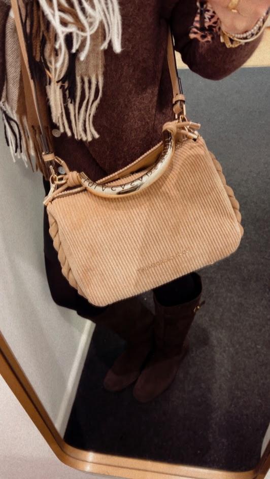 Bandolera de terciopelo con asa metalizada personalizada y logotipo grabado. Incluye correa ajustable y detalles trenzados en los laterales. Interior amplio con compartimentos funcionales. Cremallera superior para mayor seguridad. ALTO 13cm LARGO 14cm ANCHO 7cm. Marca Lola Casademunt.